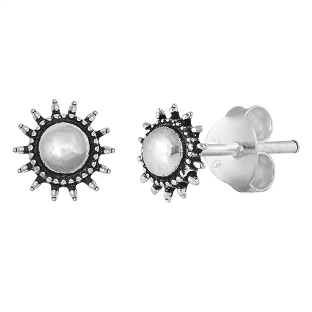 Sterling Silver Bali Style Sun Boho Burst Mandala Oxidized Stud Earrings