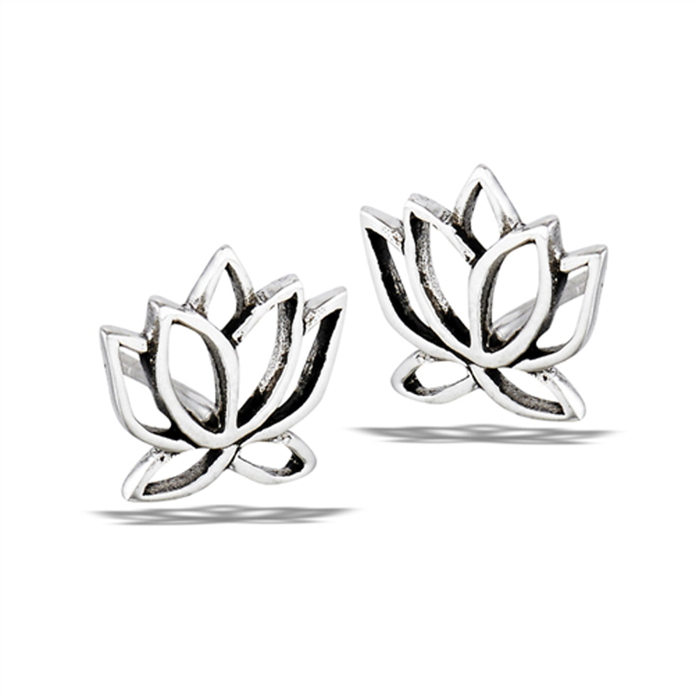 Sterling Silver Lotus Flower Bloom Nature Peace Growth Stud Earrings 925 New
