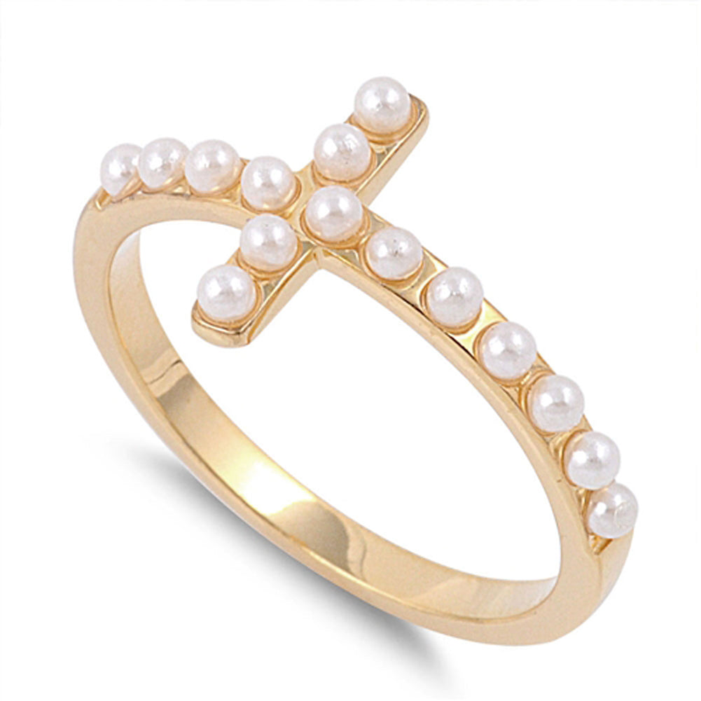 Cross Religious Sideways Polished Ring New .925 Sterling Silver Band Sizes 5-9