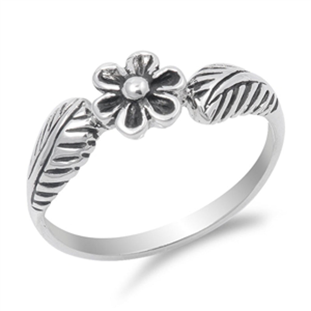Oxidized Hawaiian Plumeria Leaf Flower Ring .925 Sterling Silver Band Sizes 4-12