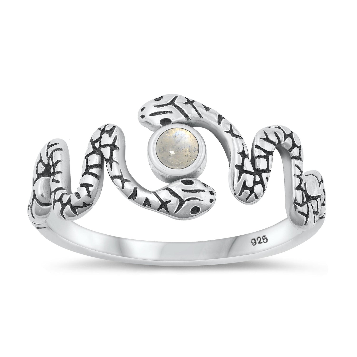 Sterling Silver Moonstone Snake Ring