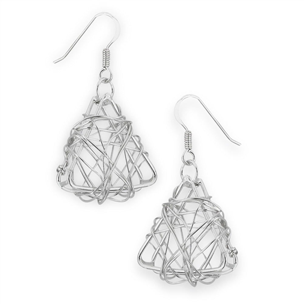 Wire Wrapped Abstract Dangle .925 Sterling Silver Cage Triangle Unique Earrings